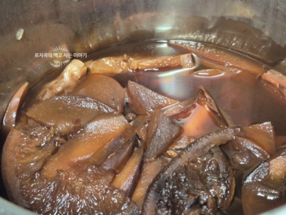 9. 보글보글 끓어오르면 약불로 줄여 25분 정도 끓여줍니다.