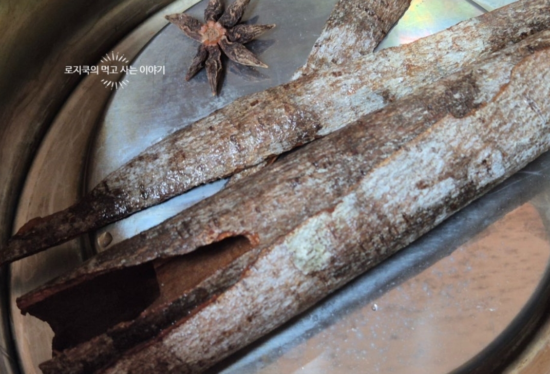 6. 시나몬스틱 2개 팔각 2개를 넣어줍니다.