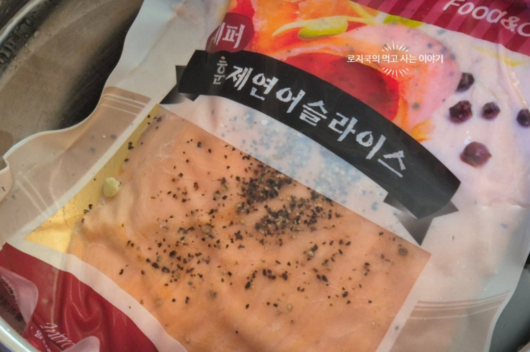 1. 냉동 훈제연어라 비닐째로 물에 담가서 해동해 줬습니다. 냉동이 아닌 경우 그냥 사용하셔도 됩니다.