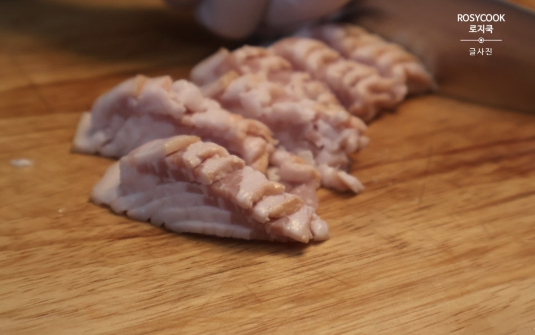 3. 베이컨 3줄을 먹기 좋은 크기로 썰어줍니다.