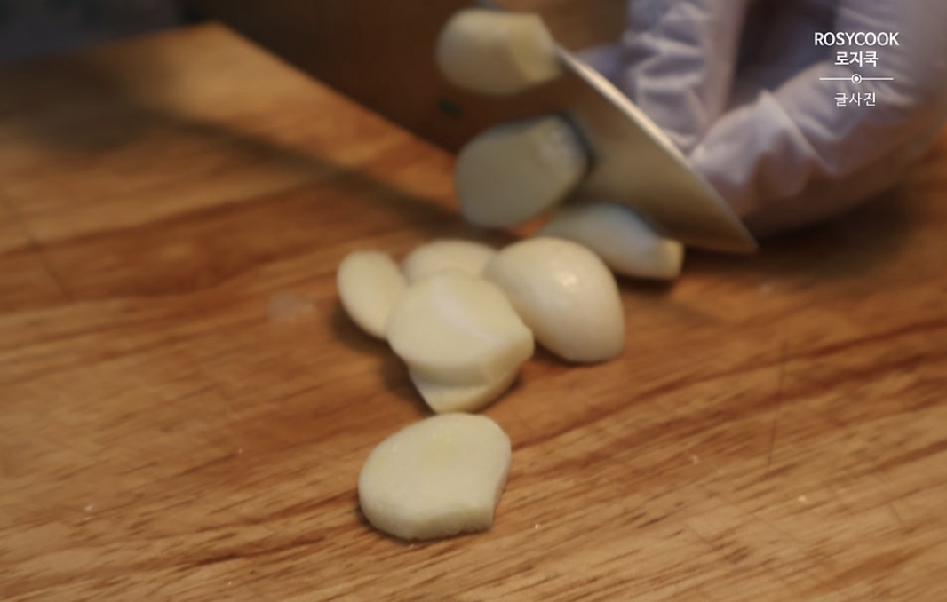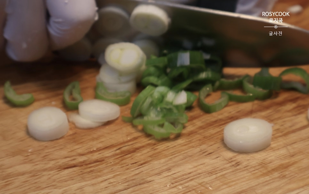 4. 대파 1대를 송송 썰어주고, 마늘 9쪽을 얇게 썰어줍니다.