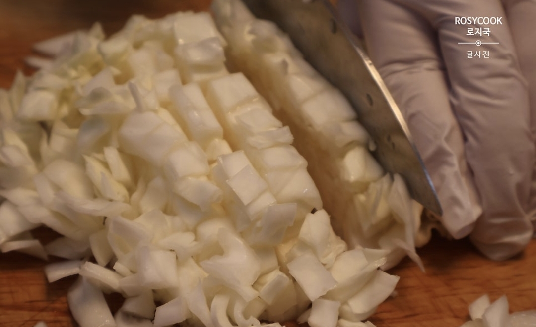 2. 양배추는 2줌 정도 나오게 다져줍니다.