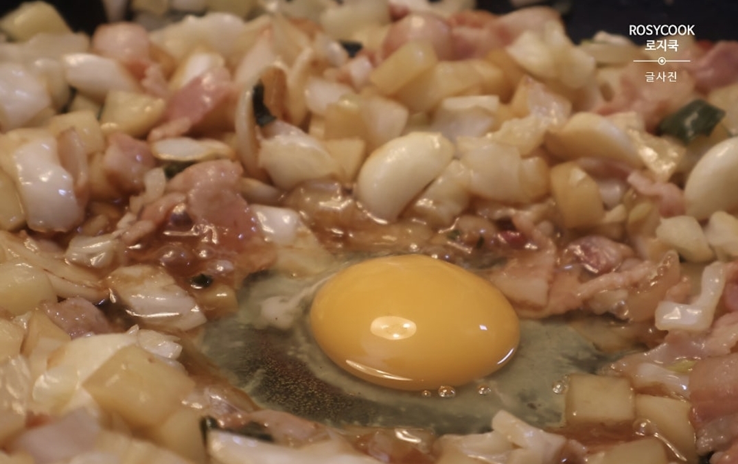 8. 감자와 베이컨을 볶아줍니다.