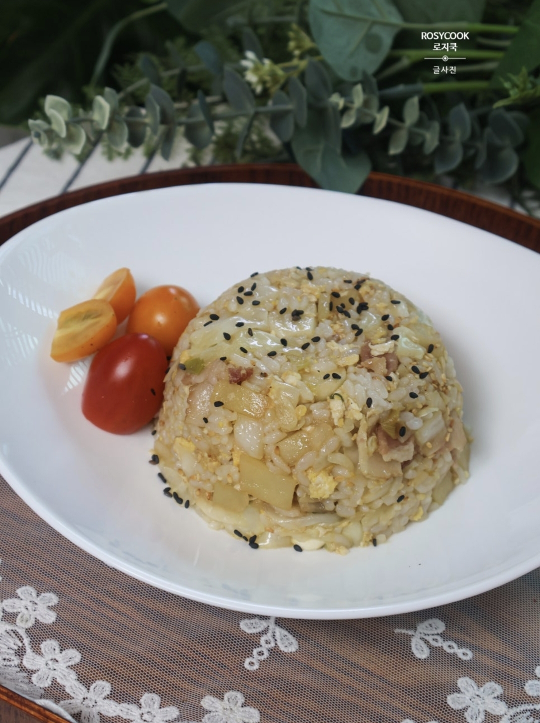 지금까지 베이컨 요리 양배추 계란 베이컨 볶음밥 소개했습니다. 아삭하게 씹히는 양배추와 짭조롬한 베이컨이 담백하게 씹히는 조합이 좋은 볶음밥입니다.