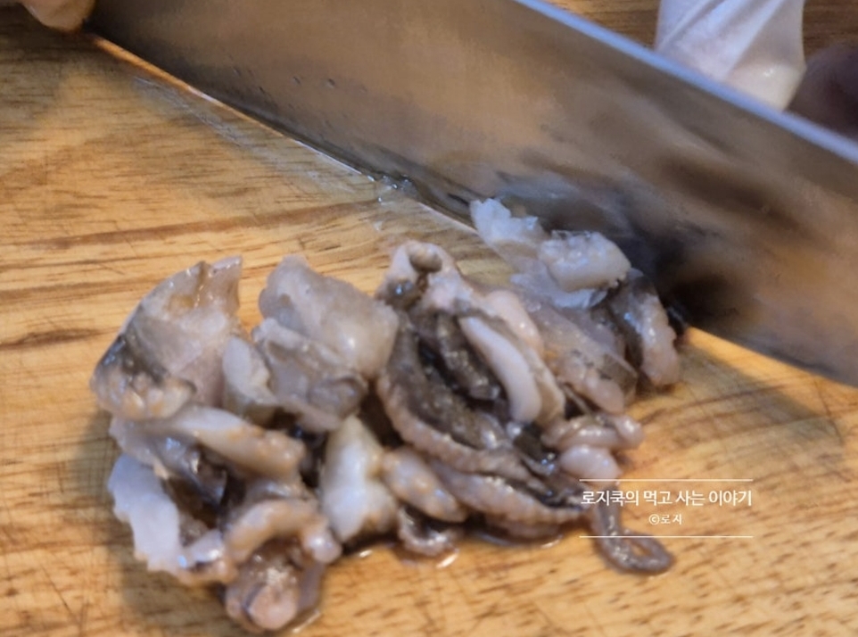 냉동 해물믹스는 흐르는 물에 씻어서 체에 밭쳐 물기를 빼주세요. 너무 큰 오징어나 홍합이 있으면 먹기 좋게 잘라주는 게 좋아요.
