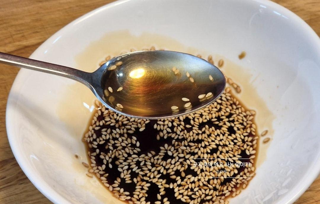 양조간장, 알룰로스, 식초를 각각 2 큰 술씩 넣고 잘 섞은 후, 고소한 깨를 솔솔 뿌려주면 완성!