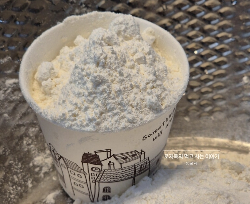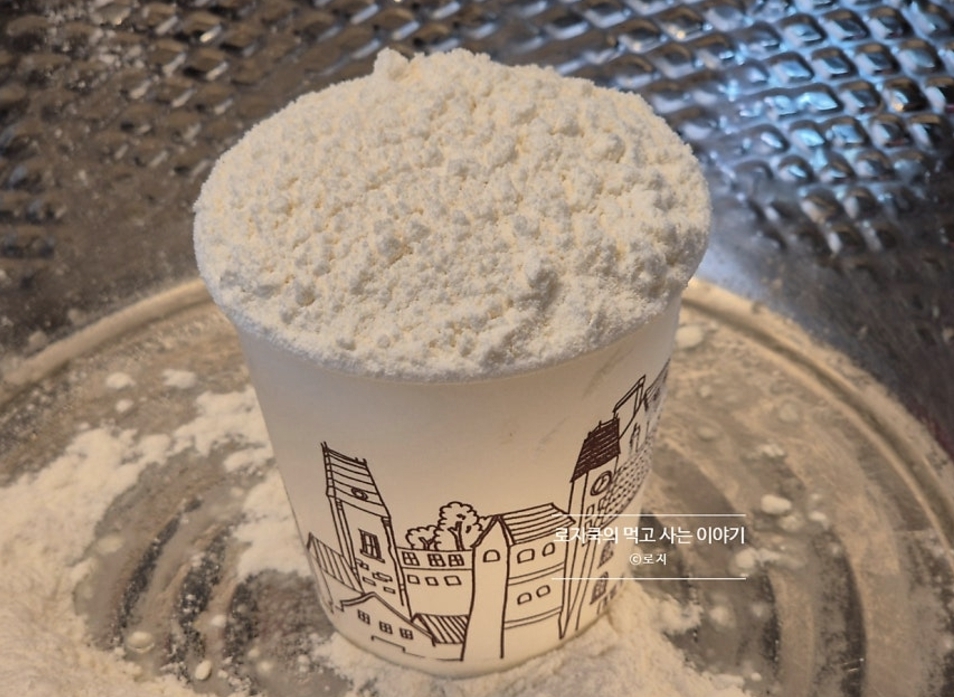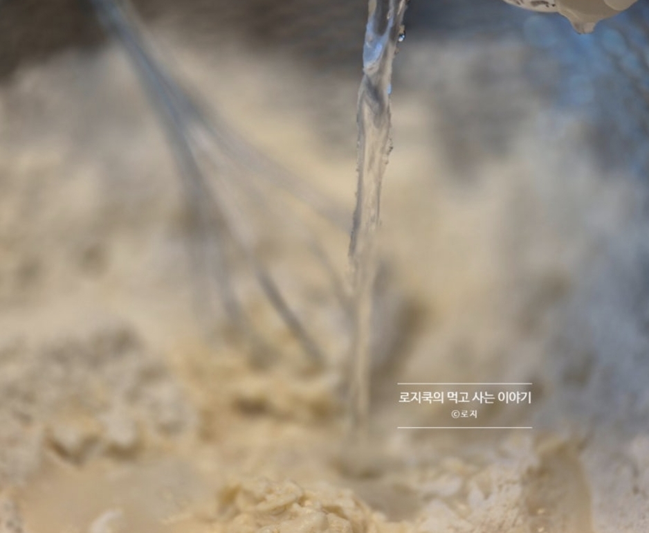 부침가루와 튀김가루를 2:1 비율로 넣고, 물 3컵을 붓고 잘 섞어주세요.