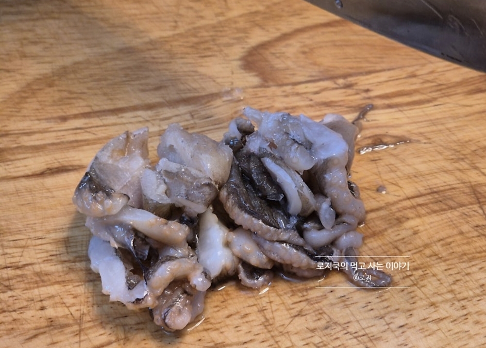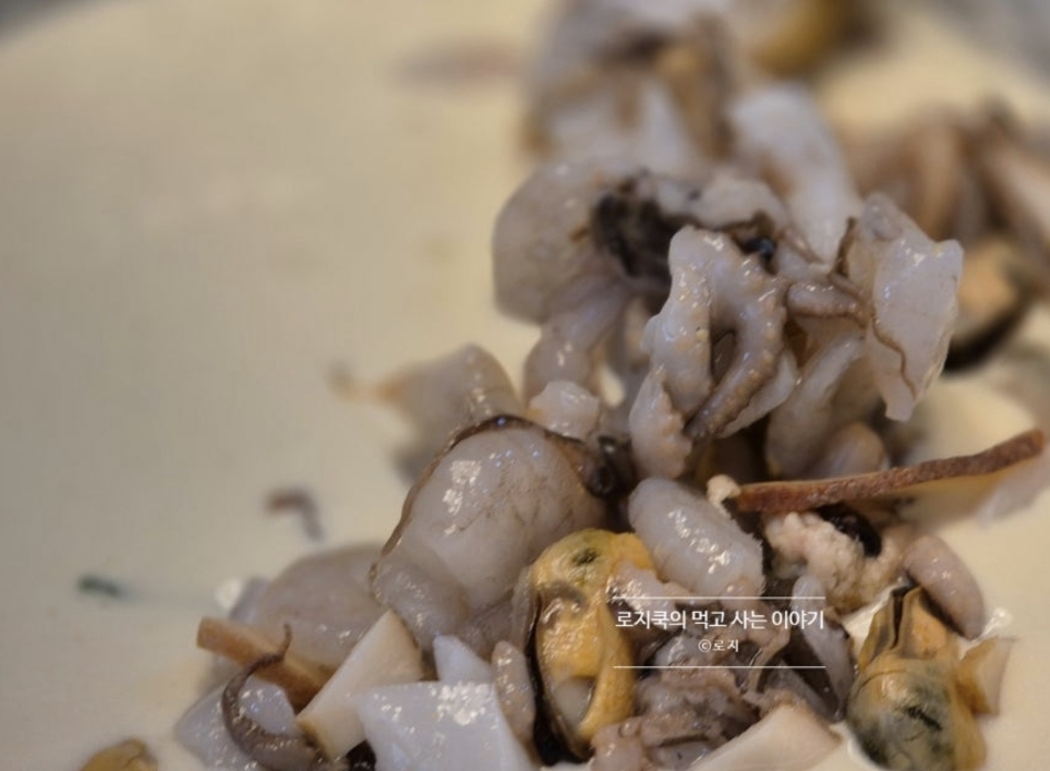 냉동 해물믹스는 흐르는 물에 씻어서 체에 밭쳐 물기를 빼주세요. 너무 큰 오징어나 홍합이 있으면 먹기 좋게 잘라주는 게 좋아요.