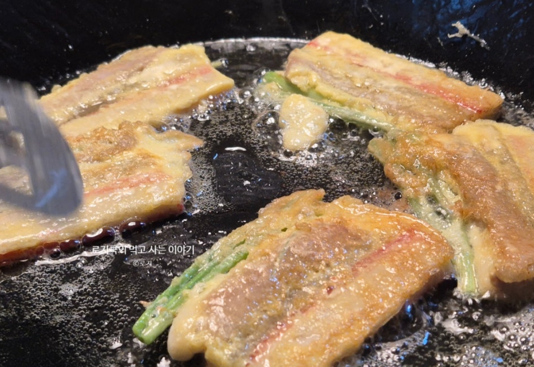 - 한쪽 면이 노릇하게 익으면 뒤집어서 반대편도 구워줍니다.