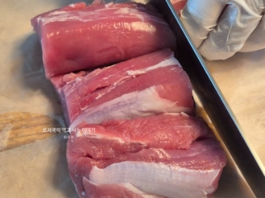 -  약불에서 천천히 구워내기 (고기가 두툼하기 때문에 중불 이상은 피하는 게 좋아요)