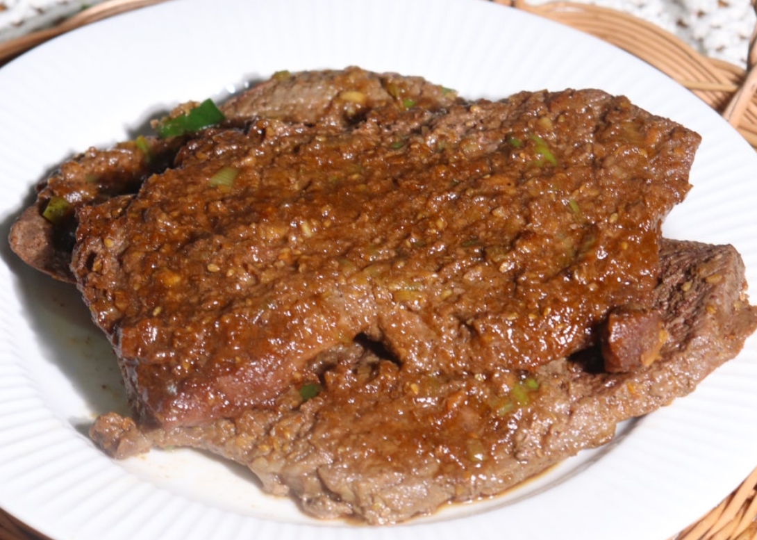 11. 산적용으로 눌러주신 설깃살 648g입니다.(3장) 양념을 골고루 발라줍니다.