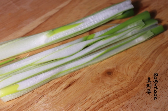 3. 대파도 쫑쫑 썰어서 준비해 줍니다. 소고기 양념에 1/2대, 돼지고기 양념에 1/2대씩 총 1대 썰어줍니다.