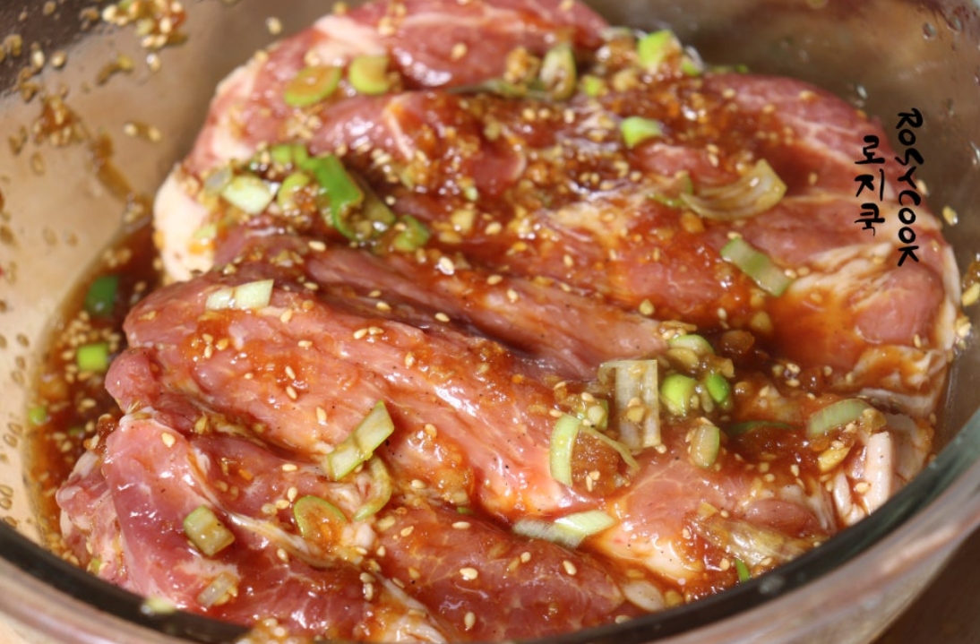 소고기와 돼지고기의 양념 차이는 과일 차이입니다. 소고기에는 배, 돼지고기에는 사과를 사용합니다.