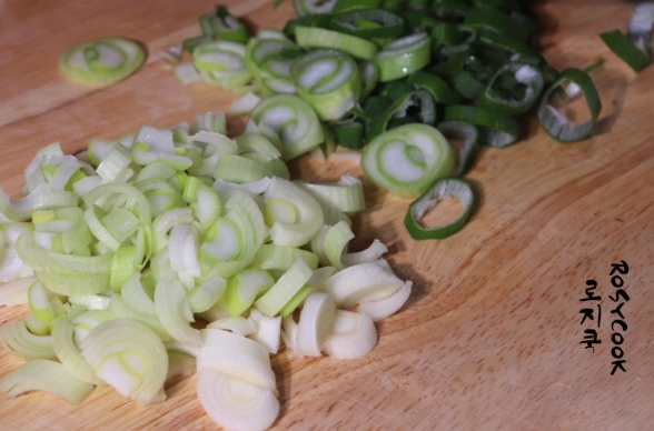 3. 대파도 쫑쫑 썰어서 준비해 줍니다. 소고기 양념에 1/2대, 돼지고기 양념에 1/2대씩 총 1대 썰어줍니다.