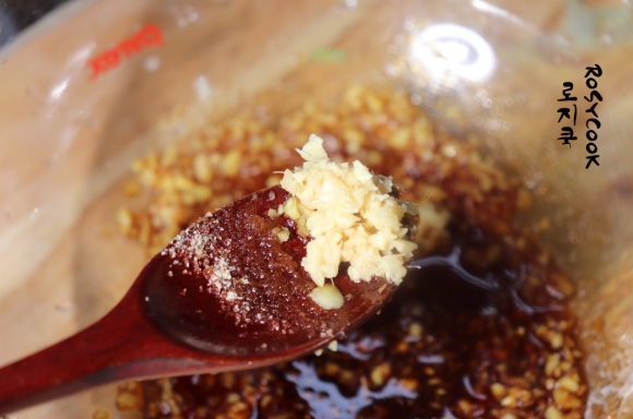 16. 간마늘 1 큰 술과 간생강 1/3 큰 술을 넣어줍니다.