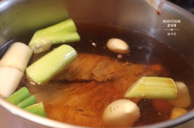 5. 1차로 삶은 소고기 양지를 넣어줍니다.