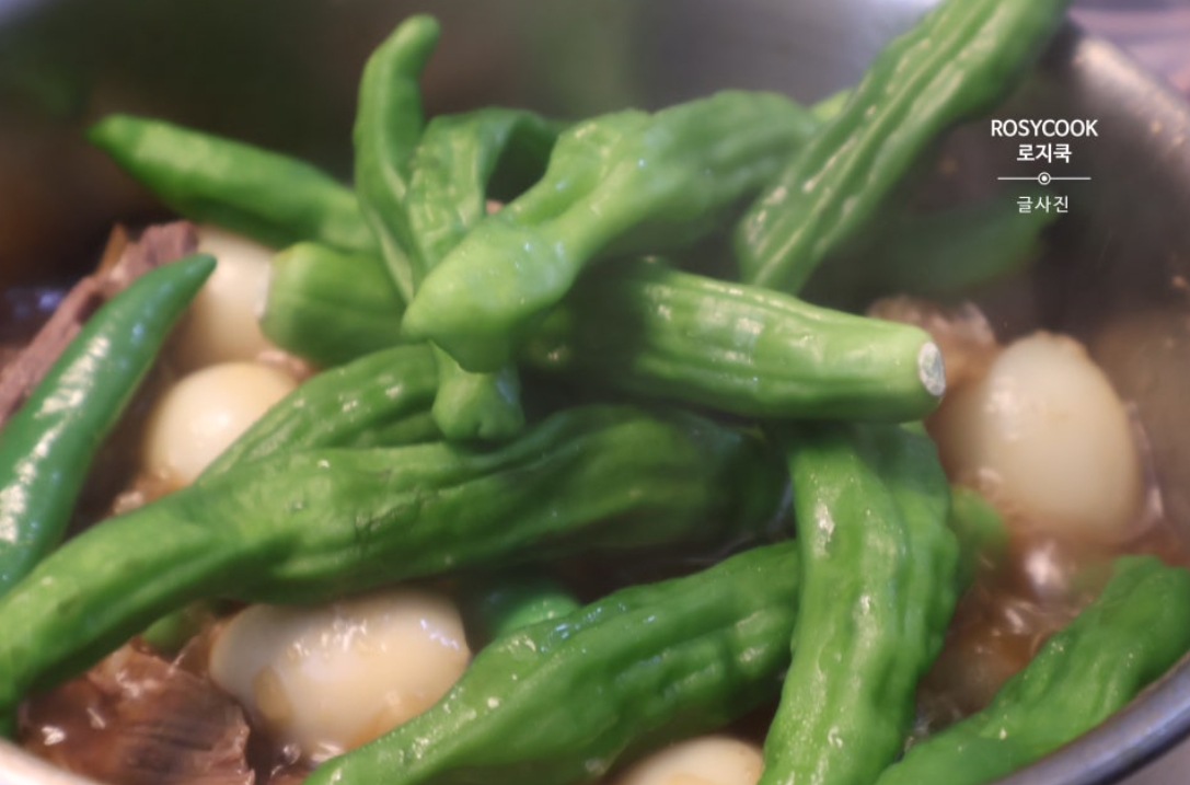 13. 거의 다 조려졌다면 꽈리고추를 넣어줍니다.