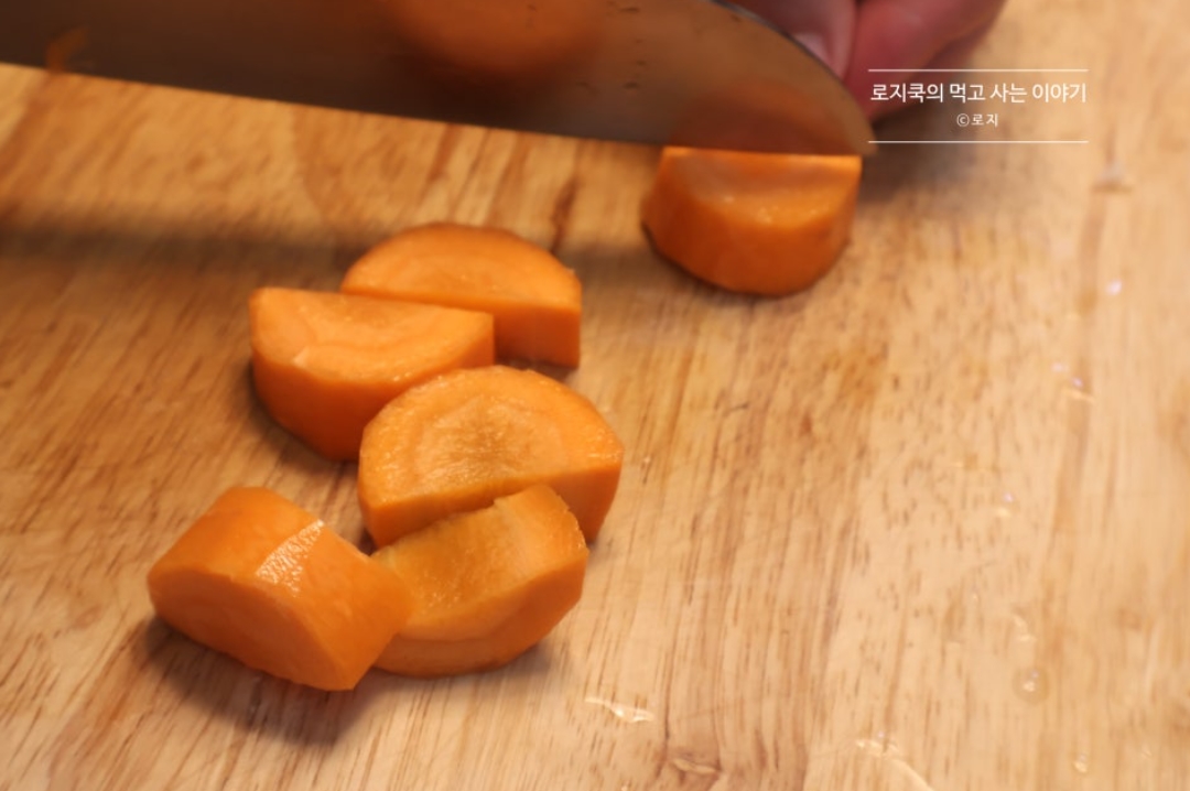 1. 당근 1/2개를 반달썰기 해줍니다.