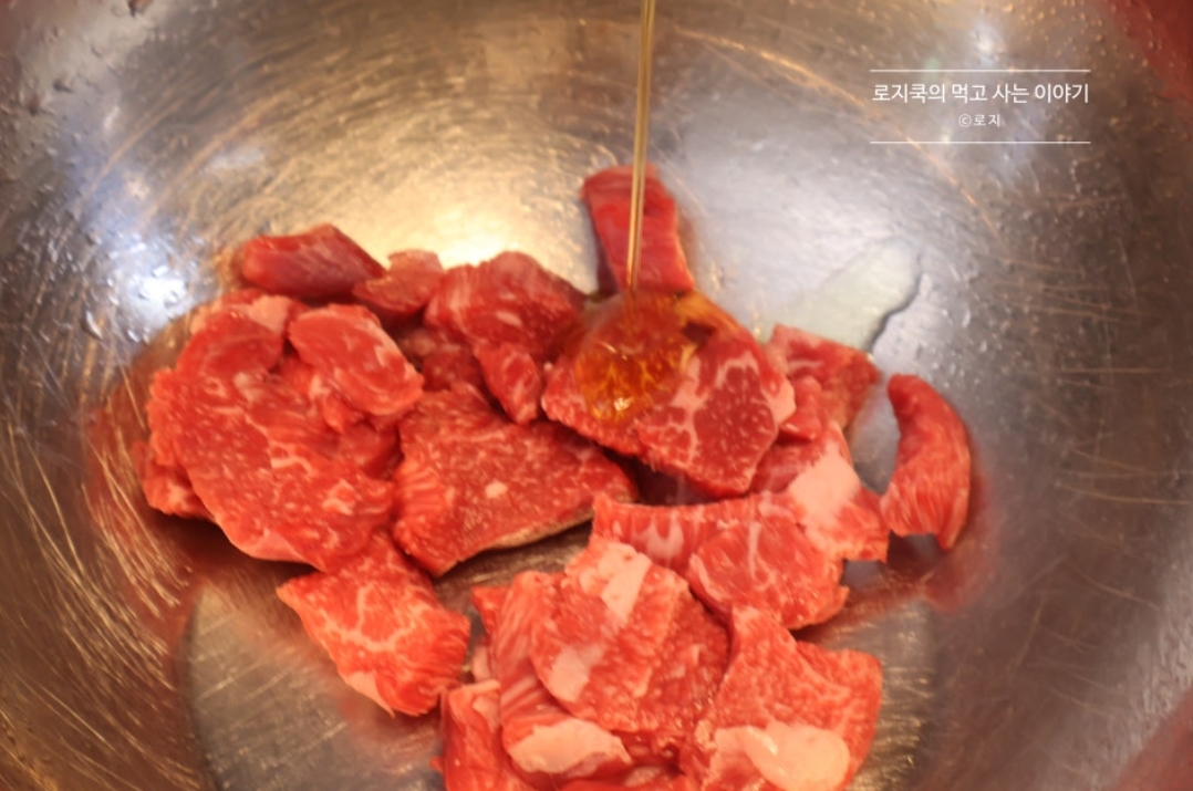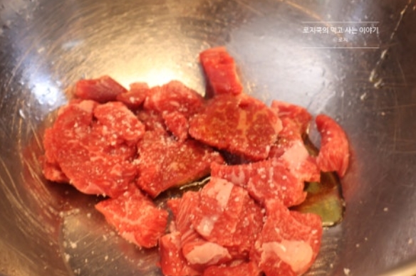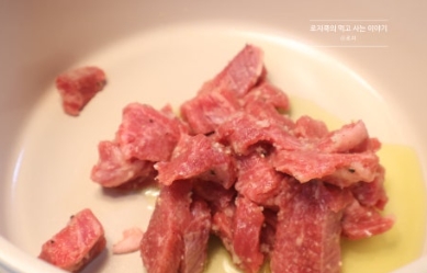 6. 저는 사태를 사용했습니다. 사태 130g에 올리브유 1 큰 술을 넣어줍니다.