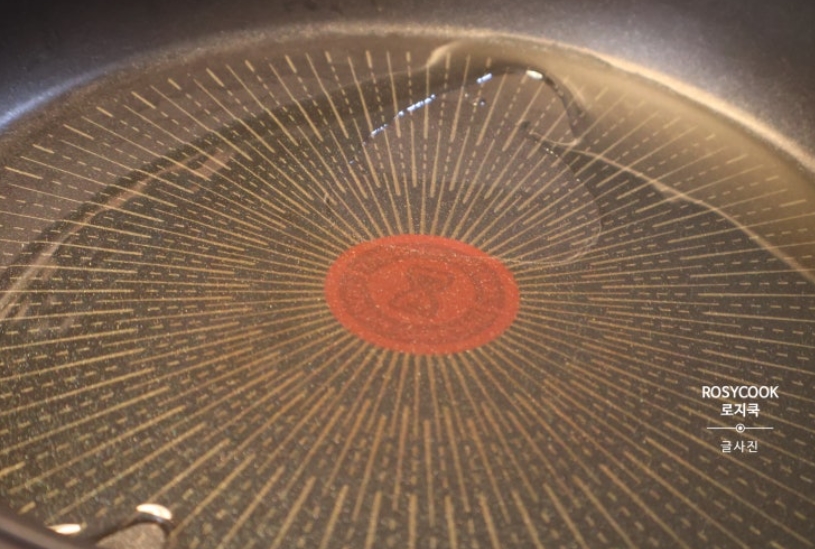 6. 팬에 식용유를 전체적으로 둘러서 예열해 줍니다.