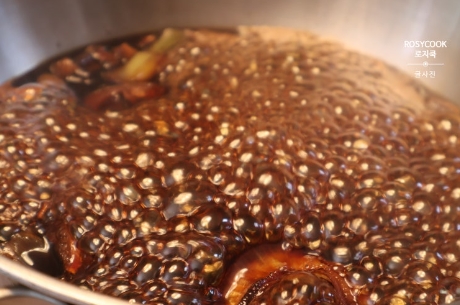 7. 중불에서 15분 ~ 20분 정도 끓여줍니다. 다 끓인 후, 체로 걸러줍니다.