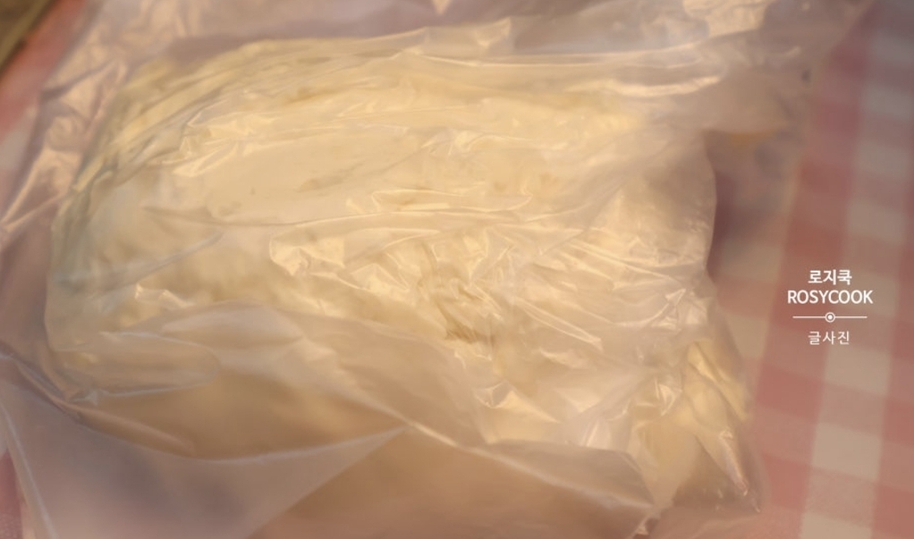 치댄 반죽은 비닐에 넣어 냉장고에서 최소 1시간 이상 숙성해주세요. 전 2시간 숙성했더니 훨씬 찰지고 탄력 있었어요.