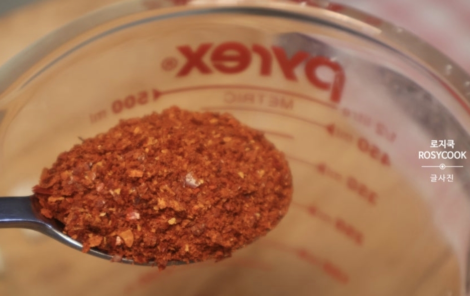 3. 고춧가루, 고추장을 넣고, 끓고 있는 육수 1국자를 섞어 풀어줍니다.