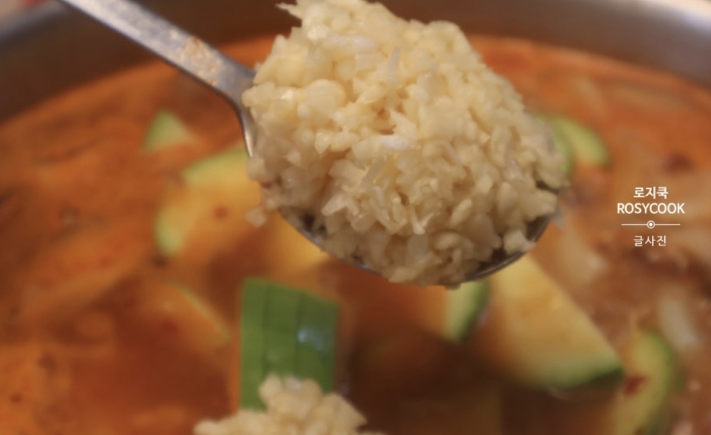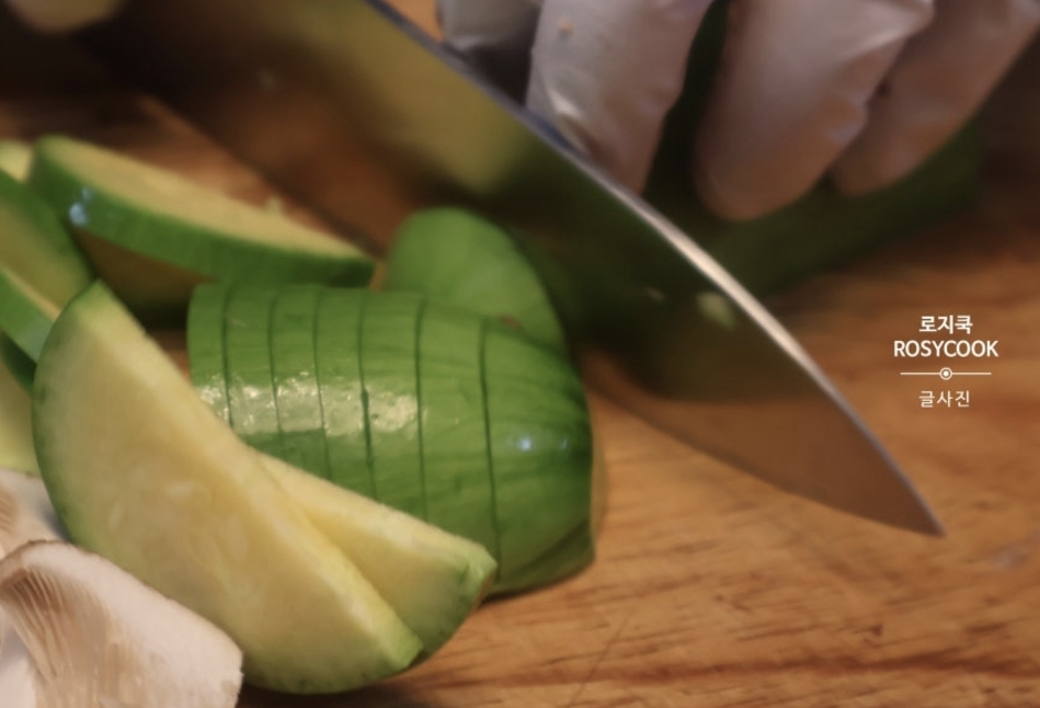 7. 마지막에 애호박과 마늘, 대파 순서로 넣고 한소끔 더 끓이면 끝!