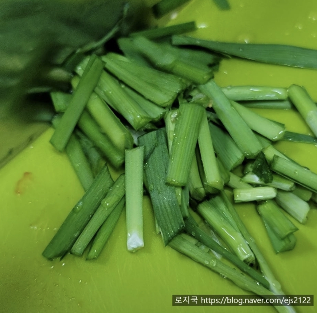 2. 부추도 세척 후, 썰어줍니다. (1줌 정도 나오게)