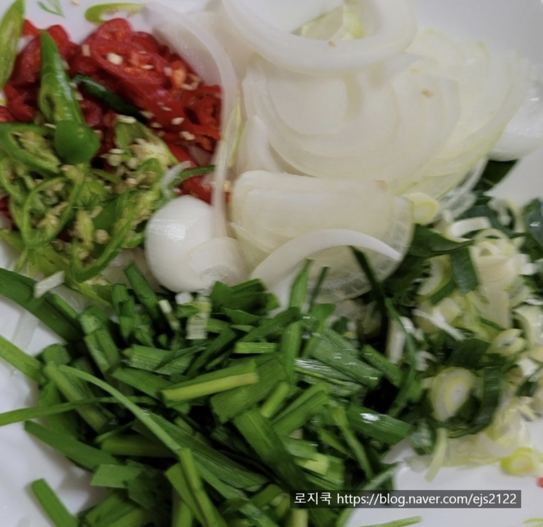 4. 홍고추와 청양고추도 세척 후, 썰어줍니다. (1개 씩)