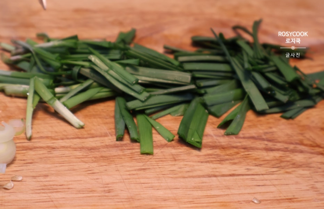 2. 부추를 2cm 정도 크기로 썰어줍니다.