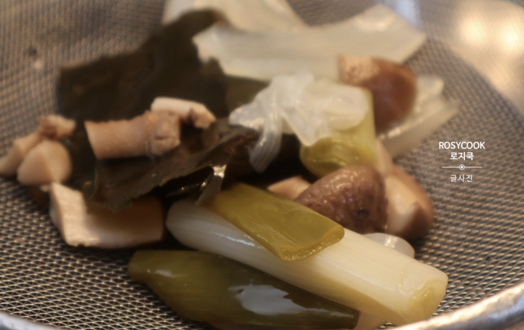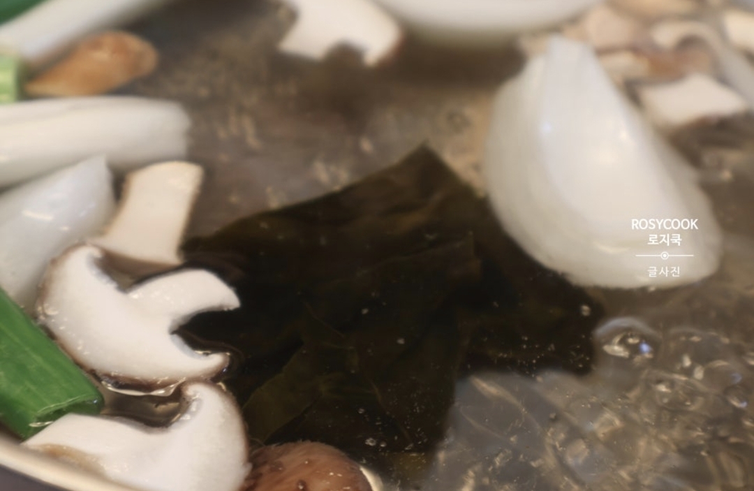 2. 표고버섯 2개를 썰어서 넣고 다시마 1조각을 넣어줍니다.