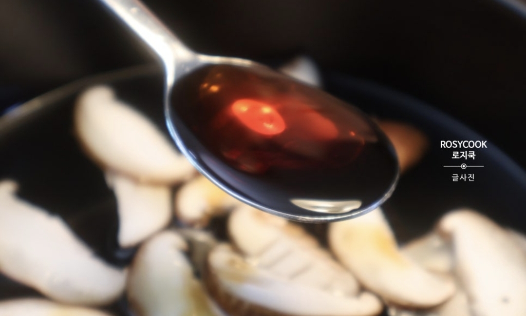 6. 썰어둔 표고버섯을 넣어주시고, 국간장 2 큰 술을 넣어서 간을 해줍니다.