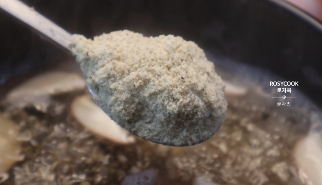 10. 거피 들깻가루 6 큰 술을 넣어줍니다.