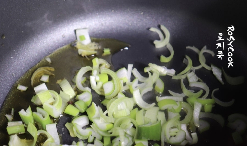 2. 냄비에 들기름을 두르고 대파를 먼저 볶아 파 기름을 내줍니다.