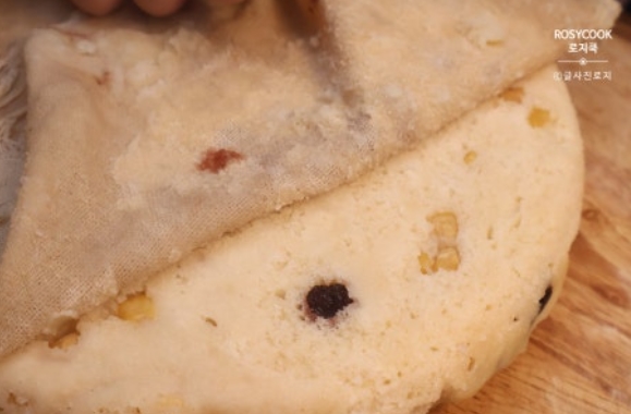 14. 뒤집어서 꺼낸 후, 면포를 벗겨내줍니다.
