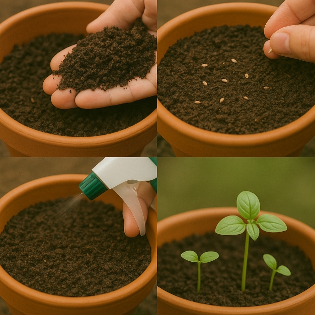 - 씨앗 뿌리기: 흙 위에 씨앗을 뿌리고 흙을 아주 얇게 덮어주세요. 바질 씨앗은 빛이 있어야 발아가 잘되니 너무 깊게 심지 않는 게 중요합니다.