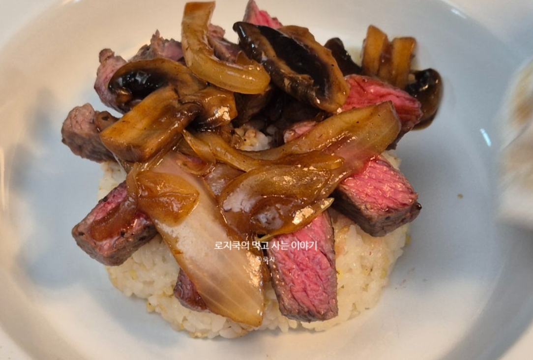 그 위에 양파와 양송이버섯을 곁들인 스테이크 덮밥 소스를 만들어 부어먹으면 잘 어우러집니다. 간단하게 소고기 스테이크 덮밥 만드는 법 알려드리겠습니다. 그럼 풍미 좋은 스테이크 굽기와 적당히 달큼하면서도 간단한 스테이크 덮밥 소스 만들기 시작해 보겠습니다.