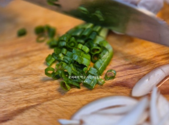 8. 양파 채 썰어줍니다.
