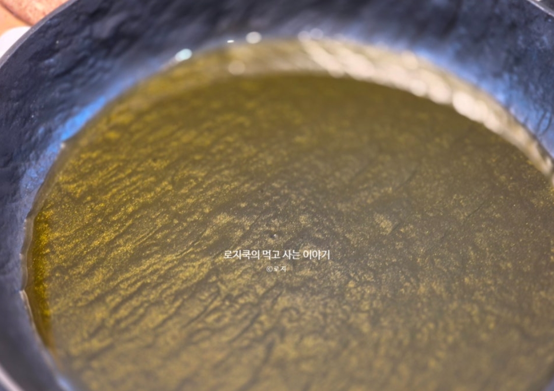3. 팬에 올리브유를 넉넉하게 둘러줍니다.