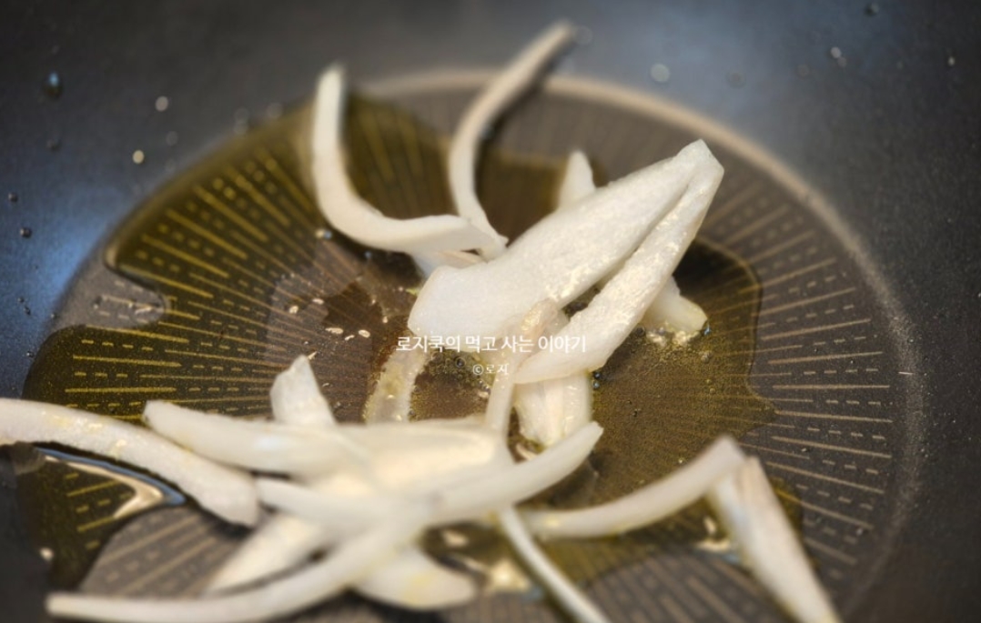 3. 팬에 올리브유를 넉넉하게 둘러줍니다.