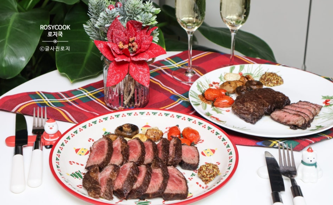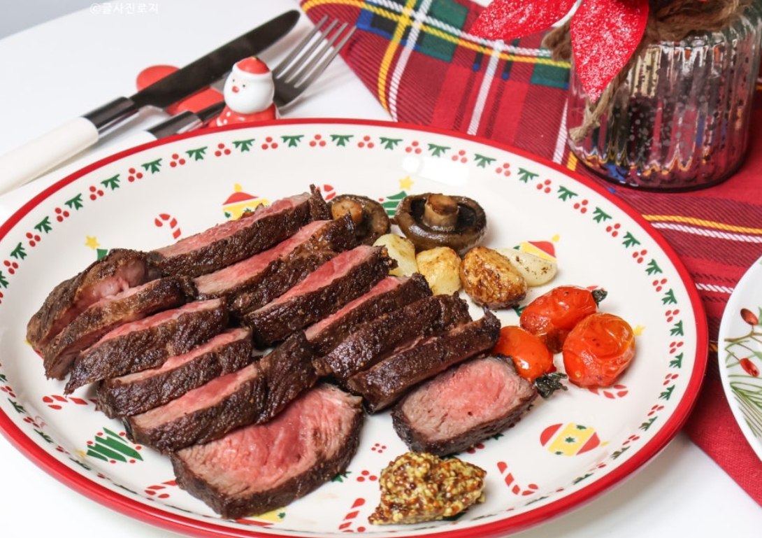 그럼 겉은 바삭하고 속은 촉촉하며, 육즙도 풍부한 스테이크 만들어서 소중한 분들과 즐거운 연말 파티 즐기시길 바라겠습니다.