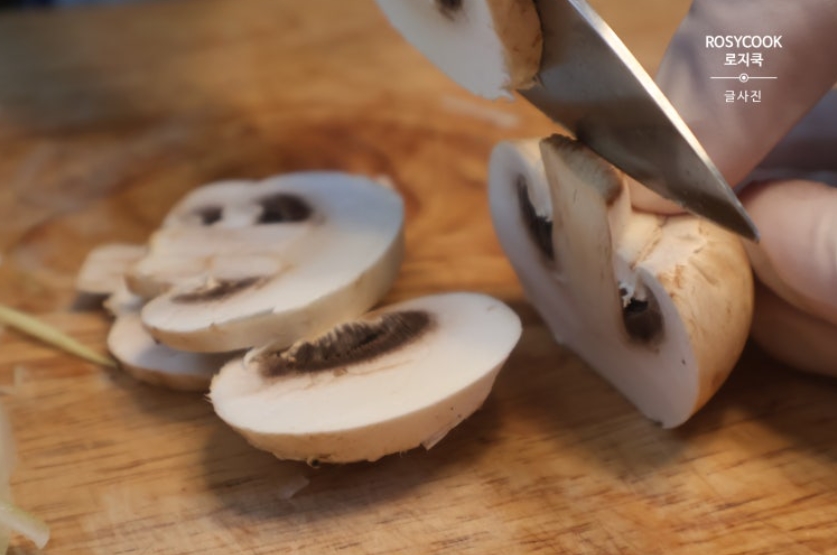 2. 양송이버섯을 적당한 두께로 썰어줍니다.
