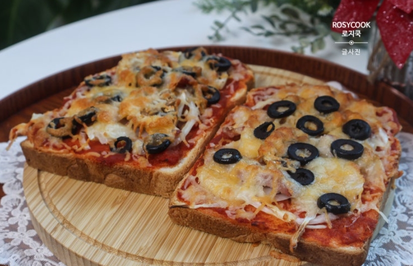 아이들 간식으로도 좋습니다. 바삭하면서도 진한 토마토 소스의 맛이 좋은 식빵 피자이니, 출출할 때 만들어서 드셔보세요.