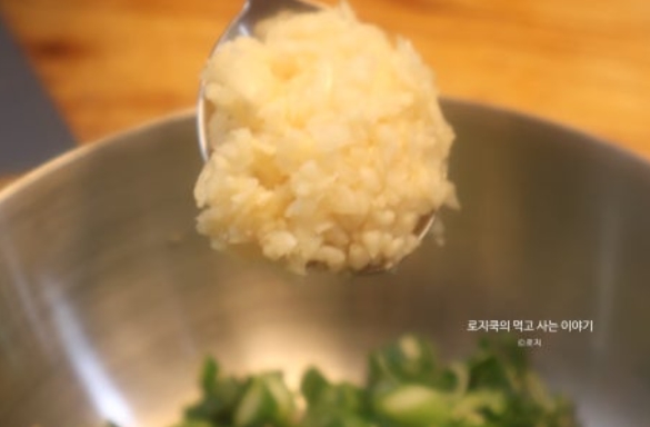 4. 간 마늘 1 큰 술, 참기름 1 큰 술을 넣어줍니다.