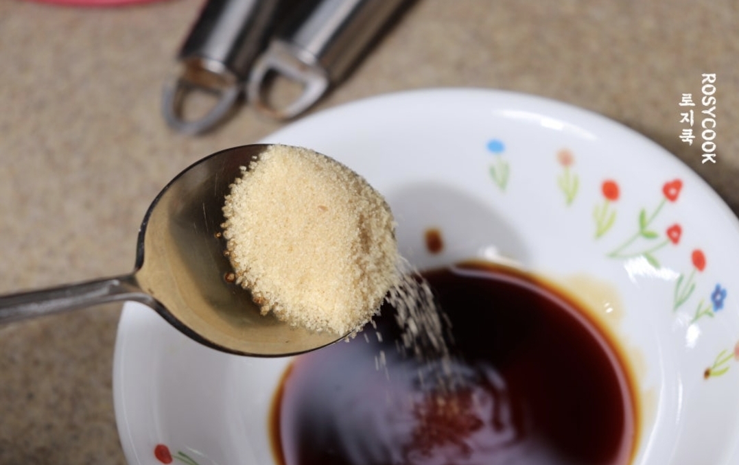 9. 양조간장 1 큰 술과 설탕 1/2 큰 술을 넣어줍니다.