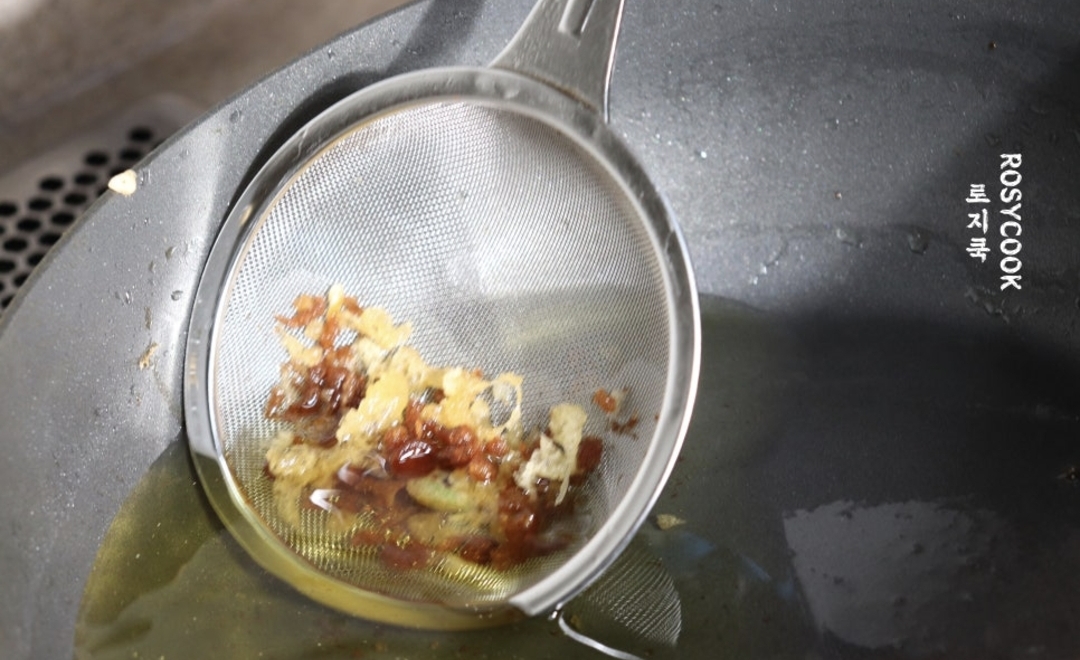 다음 튀김을 튀기실 때는 튀김가루들을 깔끔하게 건져준 후 진행하셔야 합니다. 그대로 튀기시면 잔여물들이 타면서 맛이 좋지 않습니다.