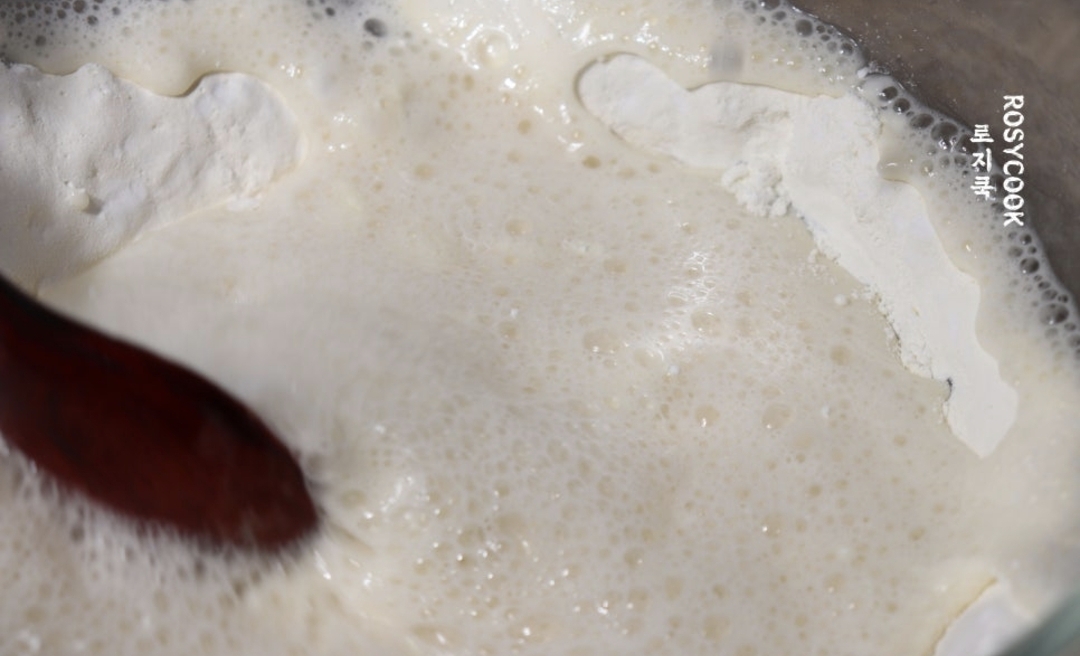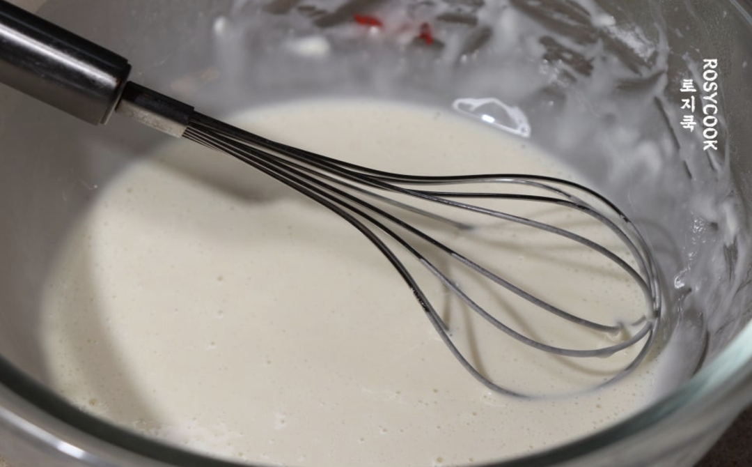 반죽 농도는 걸쭉하면서도 흐를 정도로 조절해 주시면 됩니다.
