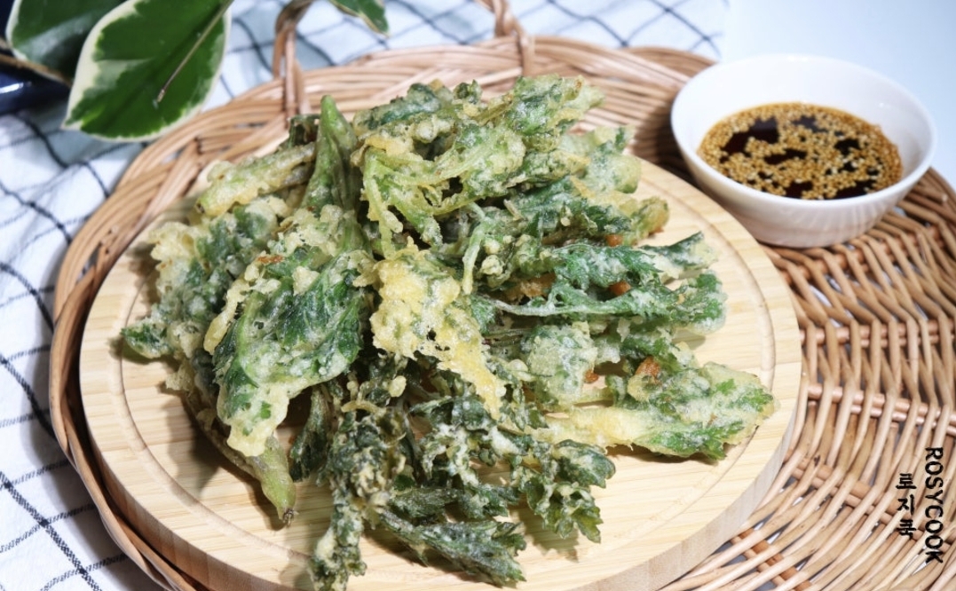 지금까지 바삭한 쑥튀김 만드는 법 튀김 간장소스 만들기 소개해 봤습니다. 한 입 먹으면 바사삭 소리와 함께 끝에서 퍼지는 쑥의 향이 매력적입니다.