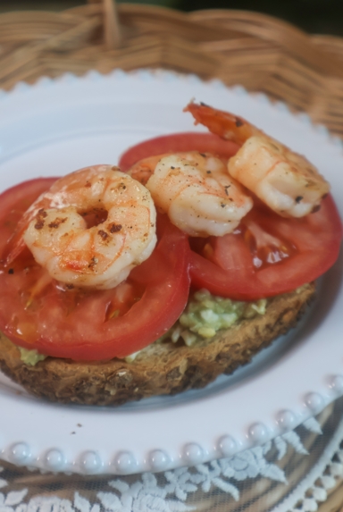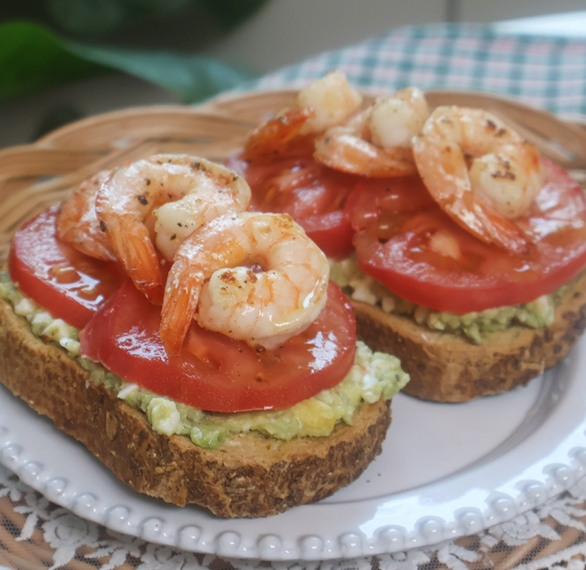 아보카도를 활용하는 대표적인 방법이죠. 오픈 샌드위치로 만들어봤습니다. 바삭하게 구운 호밀빵과 부드러운 아보카도, 새우의 식감이 잘 어울리는 샌드위치입니다. 브런치로 추천합니다.